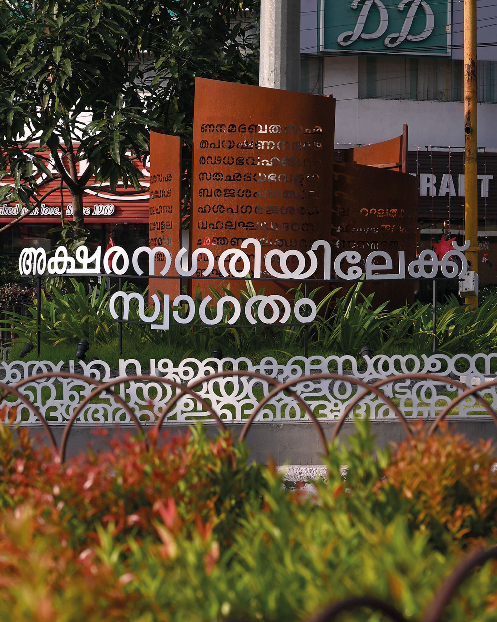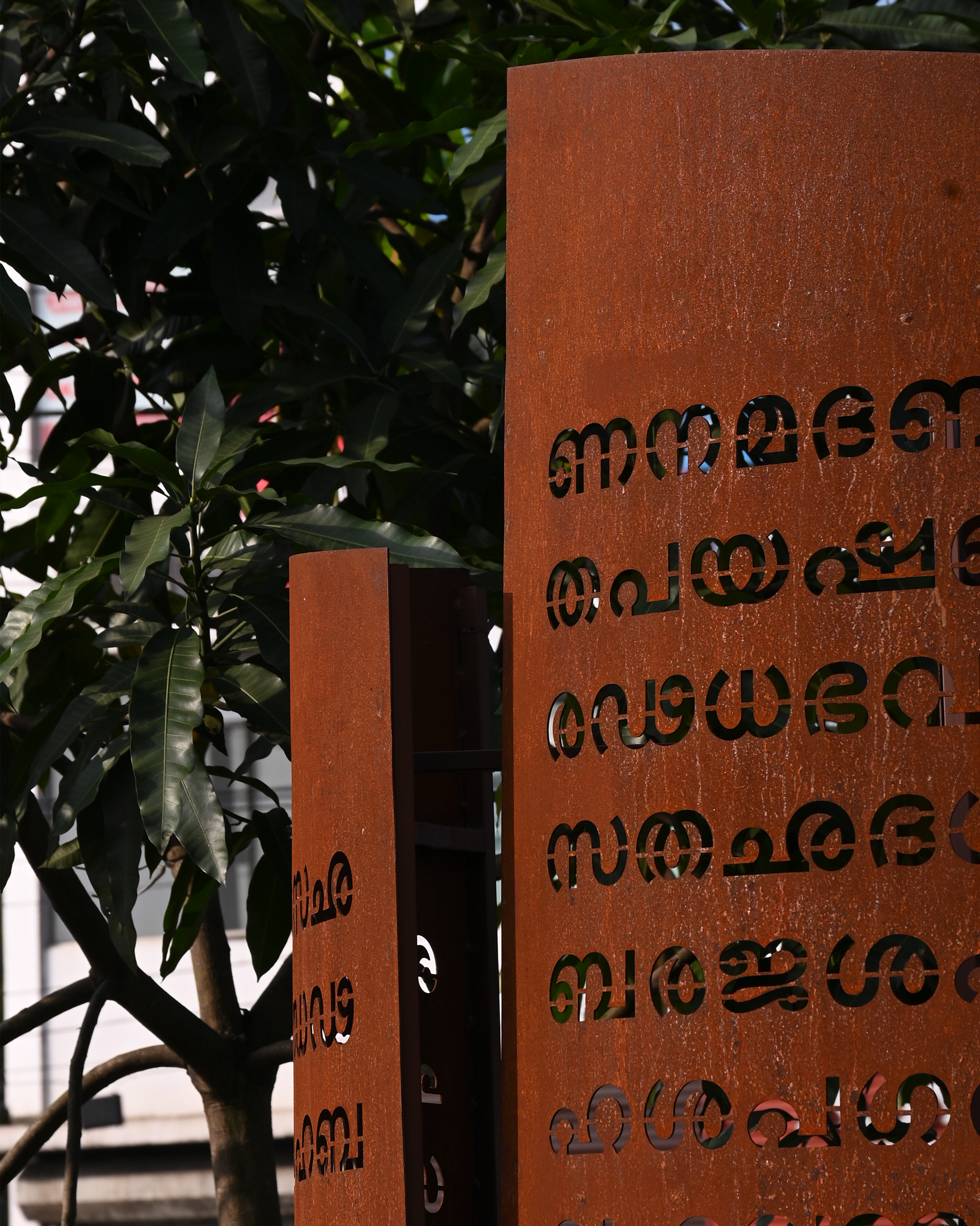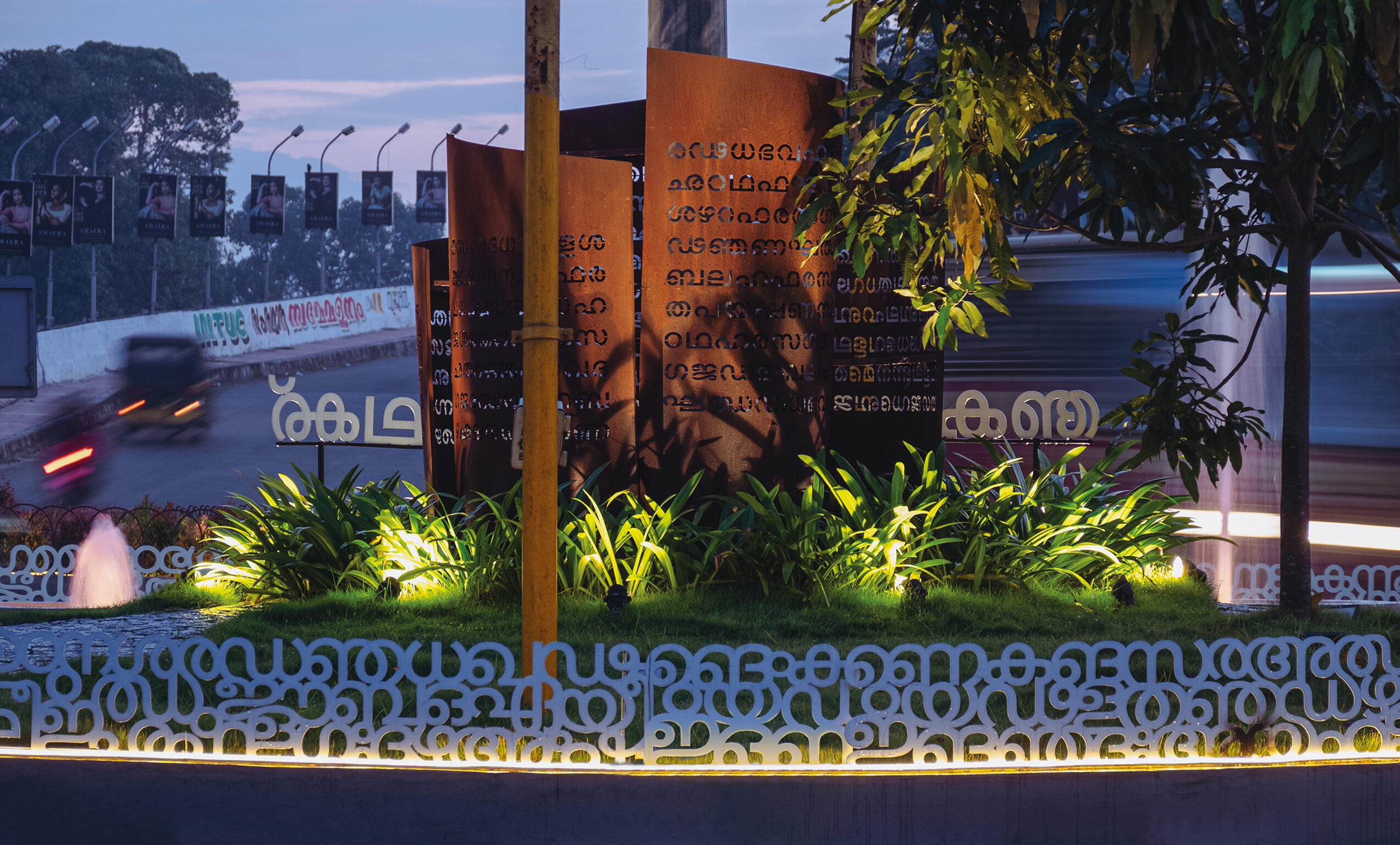 When you step into the heart of Kottayam, greeting you in the forefront is the scripted scrolls of a roundabout projecting the cuts and curves of Malayalam text. ‘en]n (Lipi)’ is a roundabout uniquely designed sculptural landmark that pays homage to the city’s cultural vibrancy and linguistic heritage. This roundabout, situated at the central crossroads in Nagampadom, Kottayam, serves as a visual ode to the artistry and historical significance of Kottayam.’