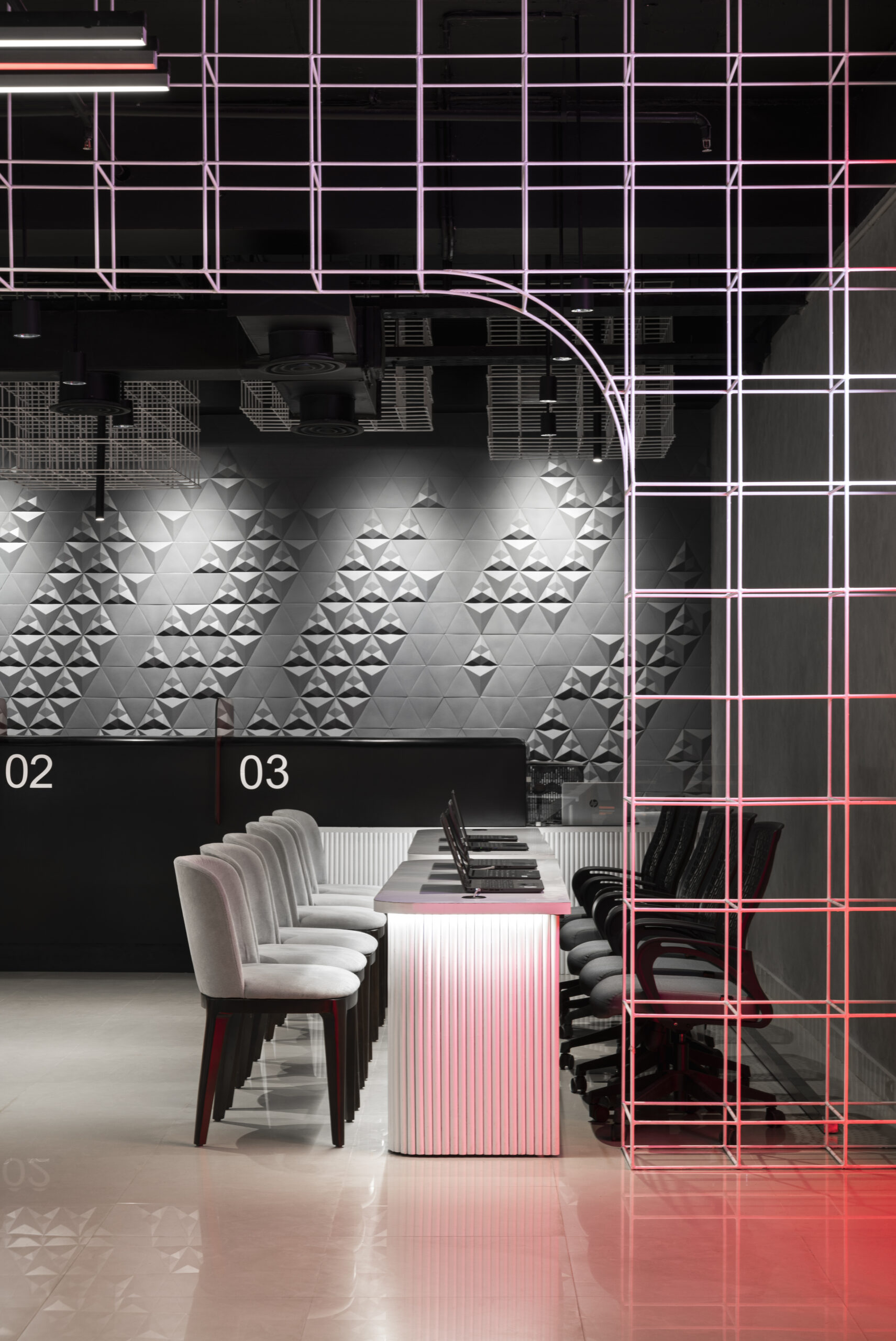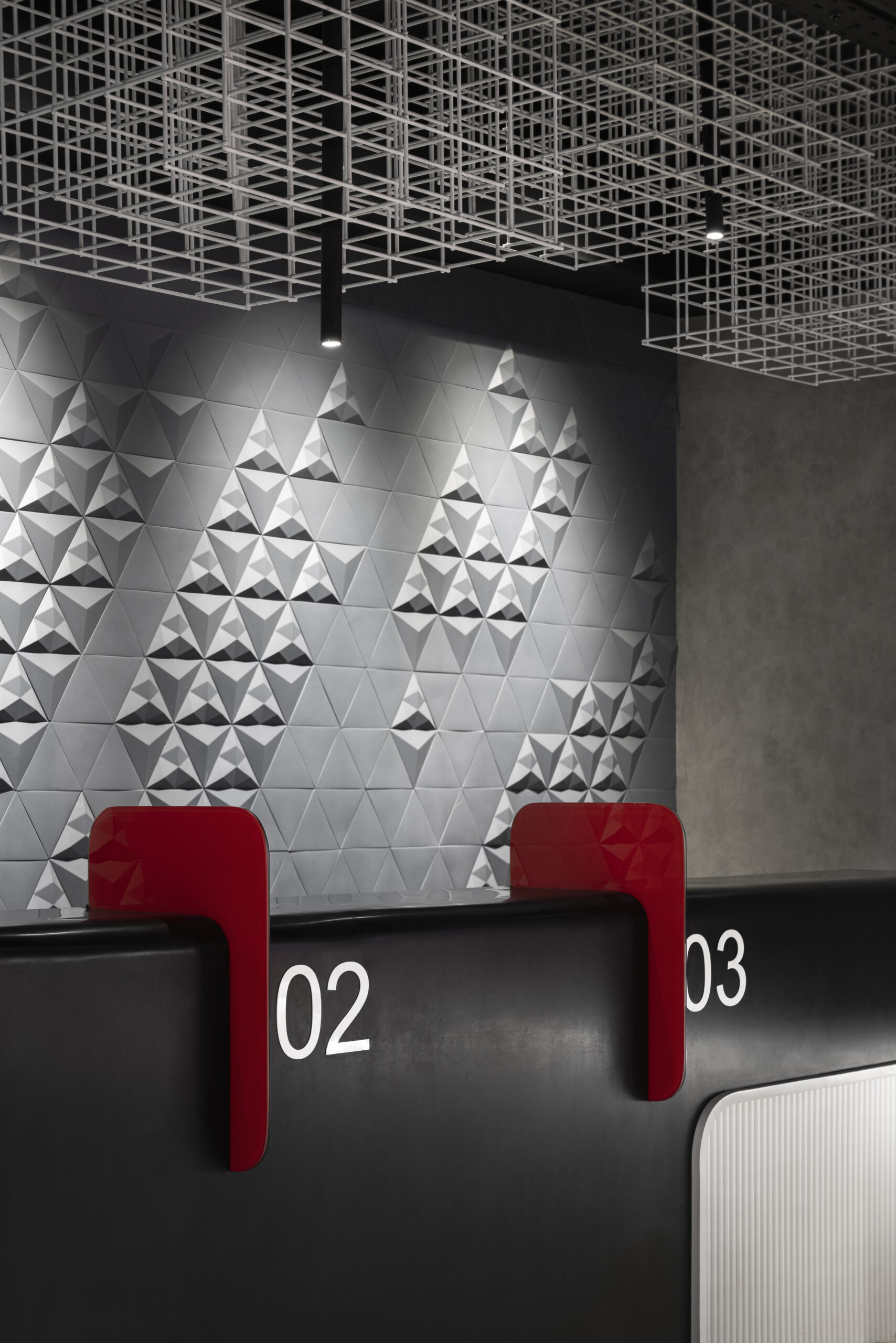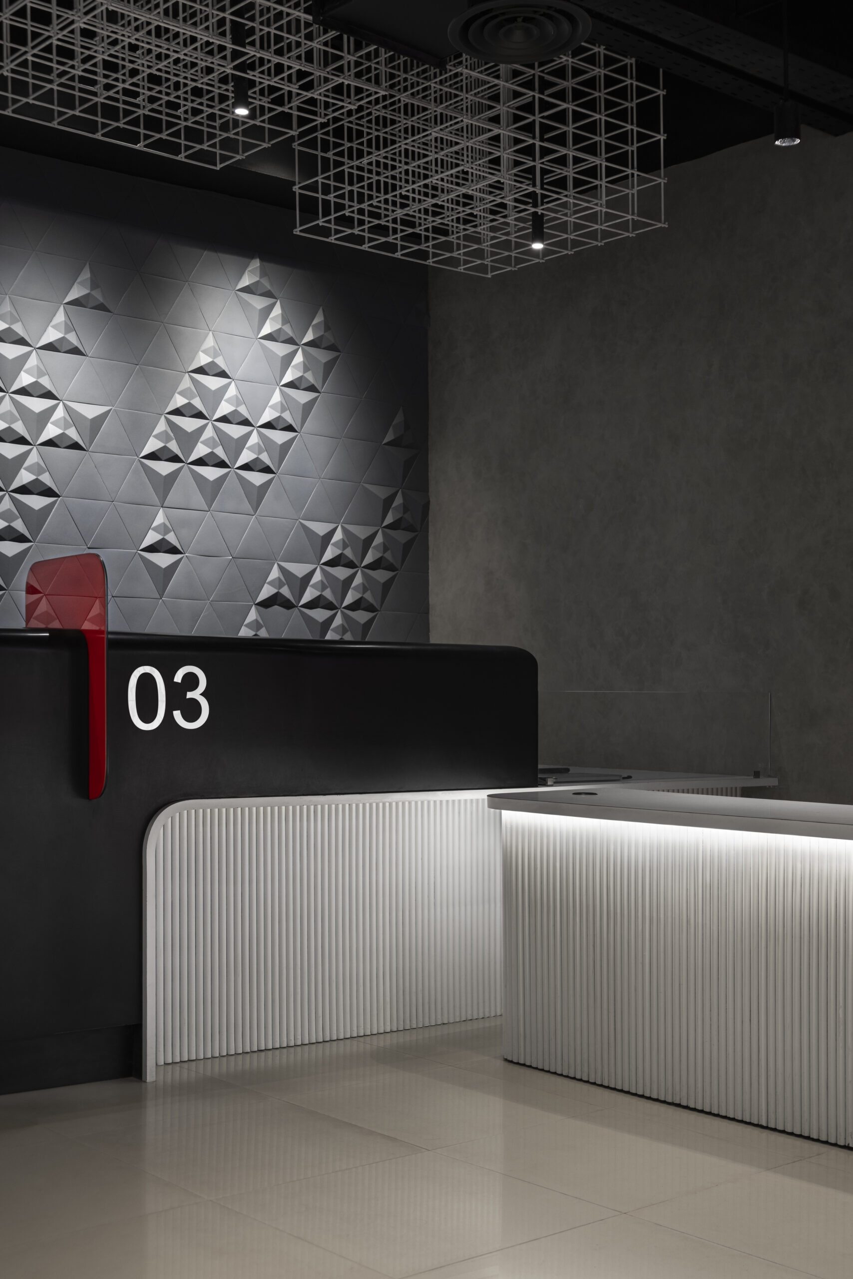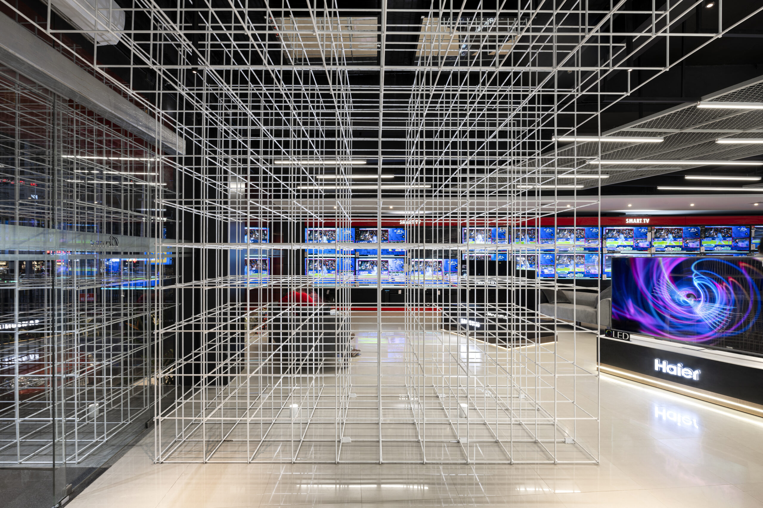 This flagship space combines retail, workspace, and services under one roof. The entry is marked by a striking mesh that draws from the concept of a celestial cloud – subtly tying into the brand’s futuristic outlook. Inside, the layout is designed to guide customers naturally through experience zones, display areas, and service sections. The upper levels house administrative and support spaces, allowing smooth backend operations while keeping the focus on customer engagement. With a thoughtful balance of design and function, the space serves as both a brand statement and a customer-first environment.